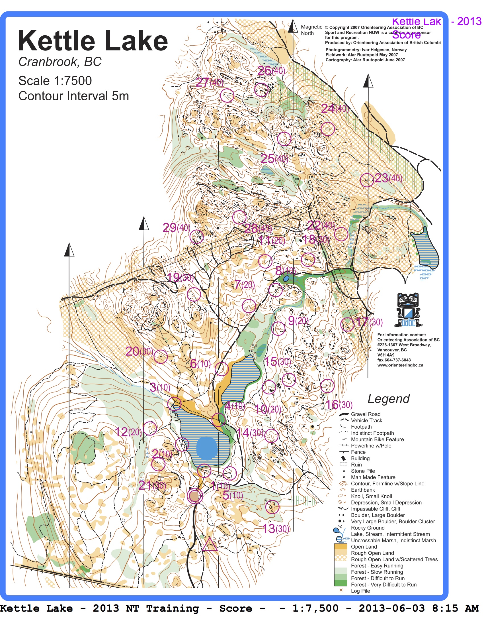Set in the Cranbrook Community Forest Kettle Lake is an ideal orienteering area: open runnable forest, an extensive trail network, technical terrain featuring rock features, ponds, small hills and open clearings.
