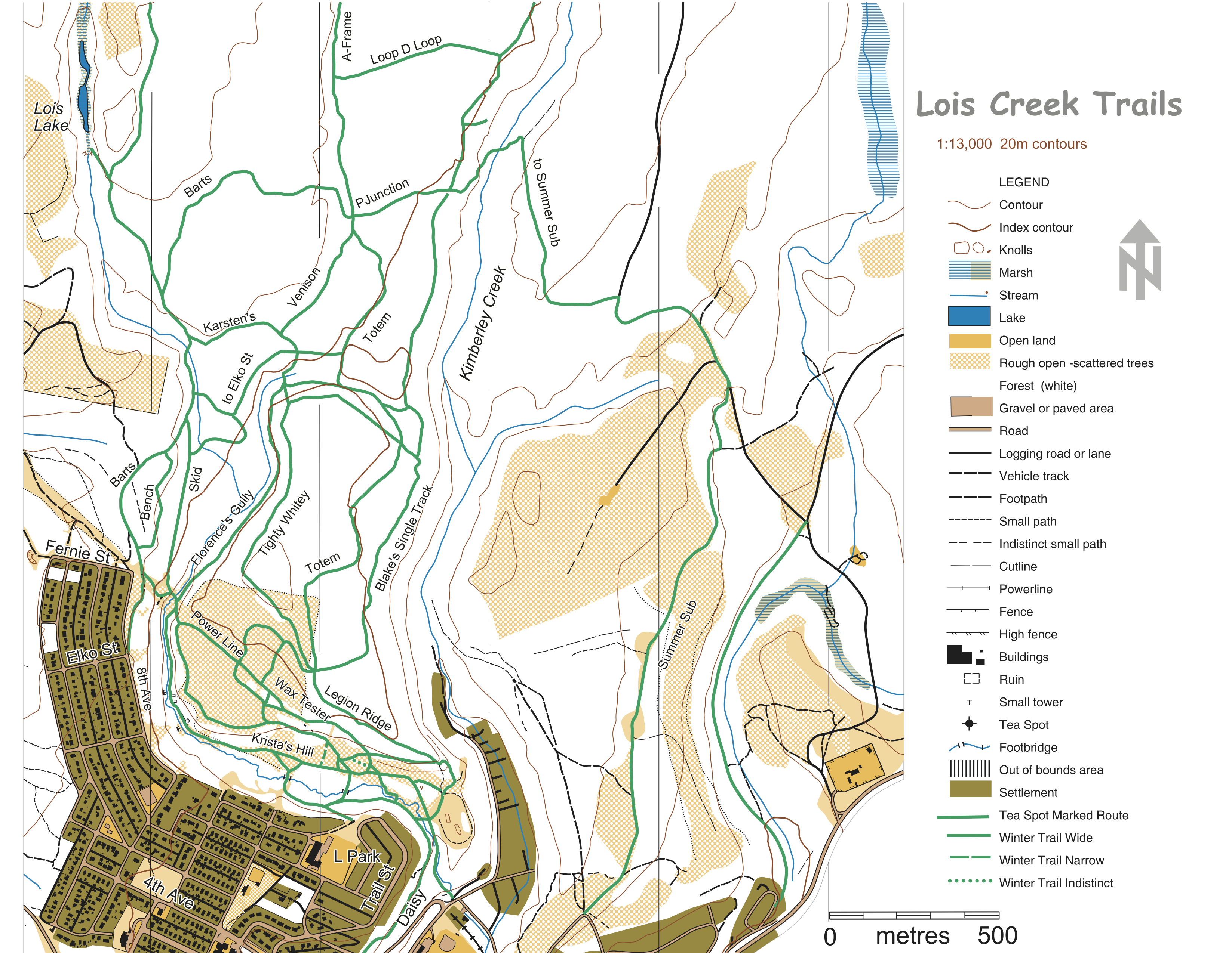 This map is specifically designed to show winter trails, in green. May trails are multi-use for walking, snowshoeing and skiing so please respect other trail users.